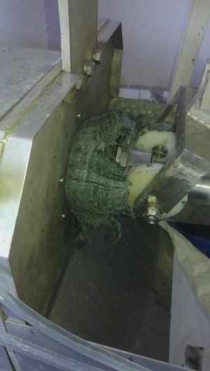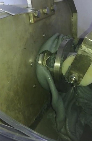 3.存放时间5小时候后,压榨效果较好,但由于物料胶状性能好,会发生紧抱出料口不下料情况,现在采取加装剥离片装置;
